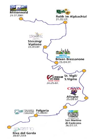 In acht Etappen von Mittenwald (D) nach Riva del Garda (I) über 663 Kilometer und 21243 Höhenmeter. Das waren die